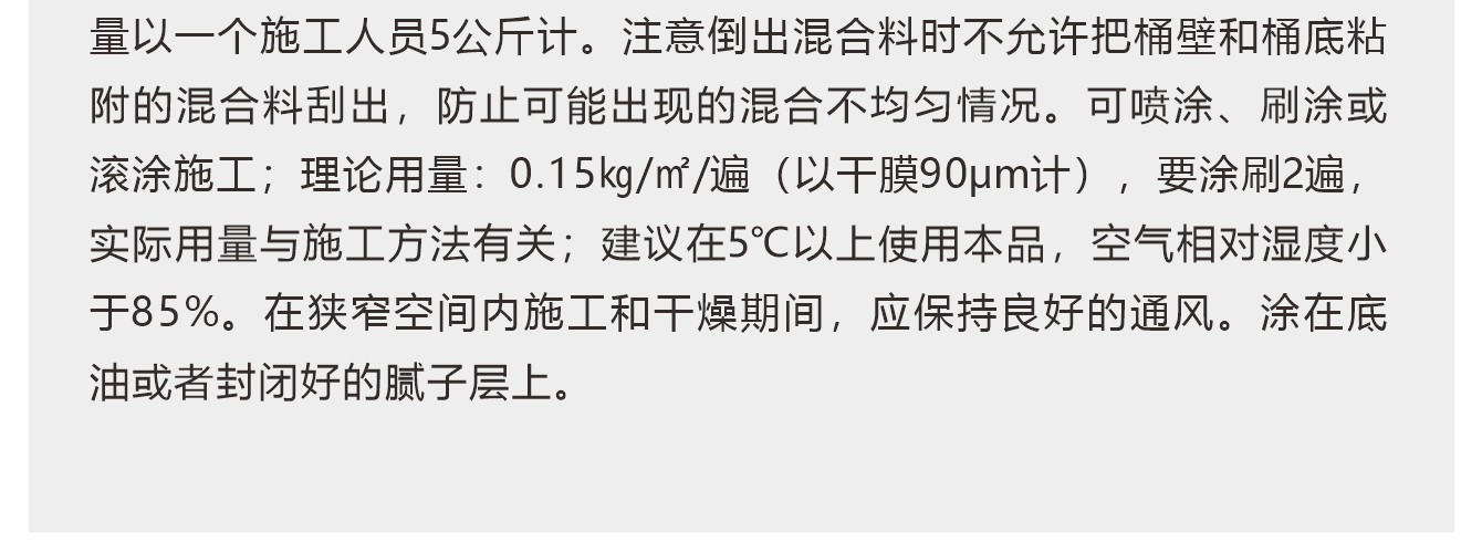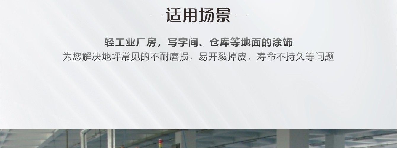 常溫固化雙組份環(huán)氧樹(shù)脂漆,層光滑、光亮、豐滿度好;溶劑含量低,大大改善施工環(huán)境。適用于輕工業(yè)廠房,寫字間、倉(cāng)庫(kù)等地面的涂飾。
