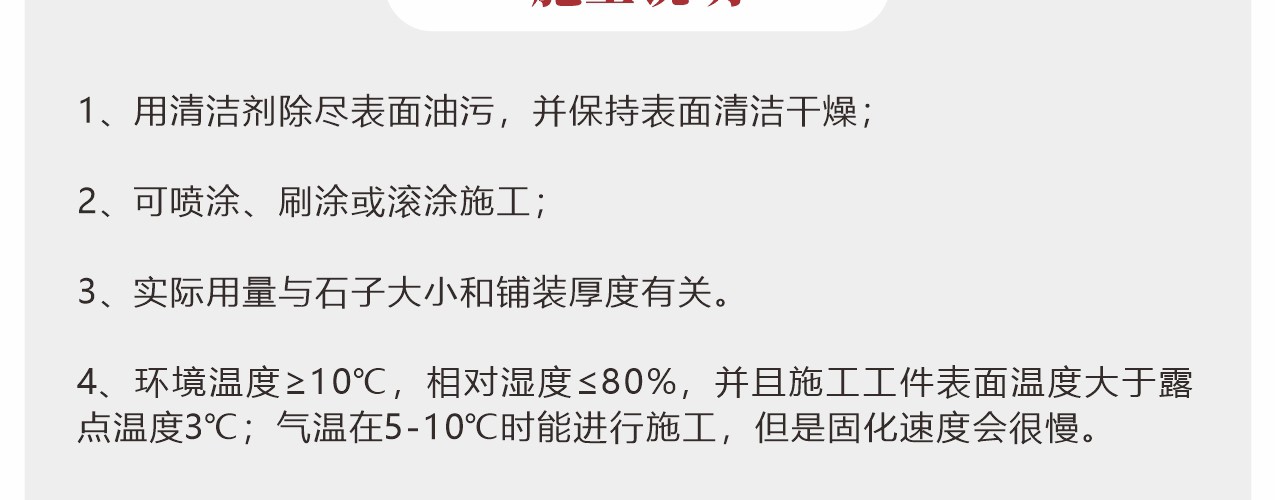 用于透水膠粘石專用石子的粘接,彩色膠粘石地坪廣泛用于市政步道、園林小路、城市廣場、高檔住宅小區(qū)、停車場、商務(wù)辦公大樓、戶外運動場所