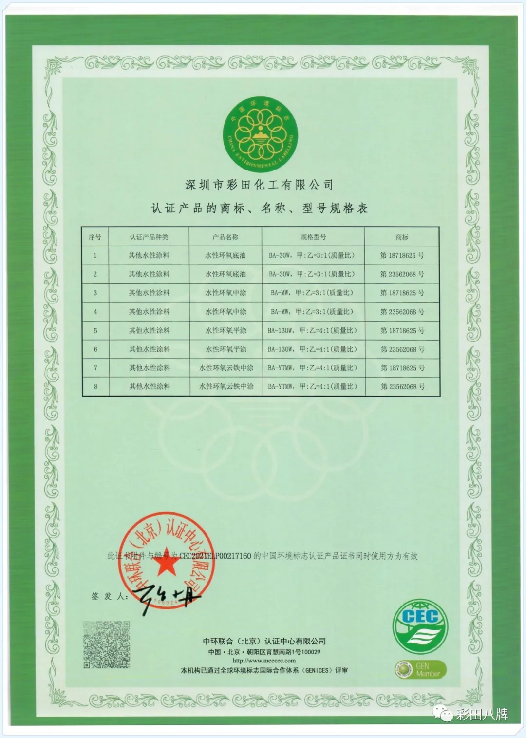 彩田一直以環(huán)保可續(xù)持發(fā)展為己任,大力推廣水性涂料,節(jié)約大量能源,大量降低對環(huán)境的污染。目前,彩田已獲得中華人民共和國生態(tài)環(huán)境部頒發(fā)的中國環(huán)境標志產(chǎn)品認證證書(十環(huán)認證),是目前地坪行業(yè)唯一獲得此認證的企業(yè)!